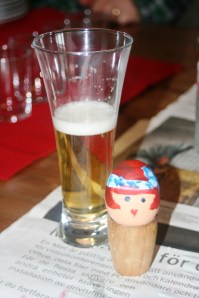 Brigitte hade kommit hem från USA och var inbjuden till svensk påskbuffé. Skatan gjorde Jansson och hade också tagit med olika sillar … och så trillade hon  köttbullar och stekte ett slags ”prinskorv”  medan de andra var i Hallstatt. Och dukade fram  rädisor och bröd och ost och ägghalvor med smaskens på och …