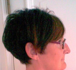 blev jag övertalad om att ha tålamod och inte låta den långa sidluggen falla för saxen. Skatan var så trött på att ha den över höger öga heeela tiden och ville egentligen klippa av den. Men men … hon är ju lätt att övertala Skatan så Frissan fick som hon ville.