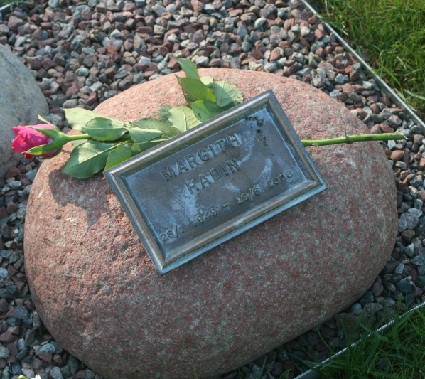 Så tidigt i morse … samma tid som hon dog… ”Klockan 7.35 den 29 juni 2008 slog Isa (Margith) upp ögonen. Tittade rakt in i Livs (Evas). Ett förvånat uttryck drog över ansiktet, ett förklarat sken liksom, ett ljus, innan blicken slocknade. Hon slöt ögonen. Hon fanns där inte mer.” … var jag där, på den vackra kyrkogården och hade en stund tillsammans med henne i den redan varma soliga morgonen.