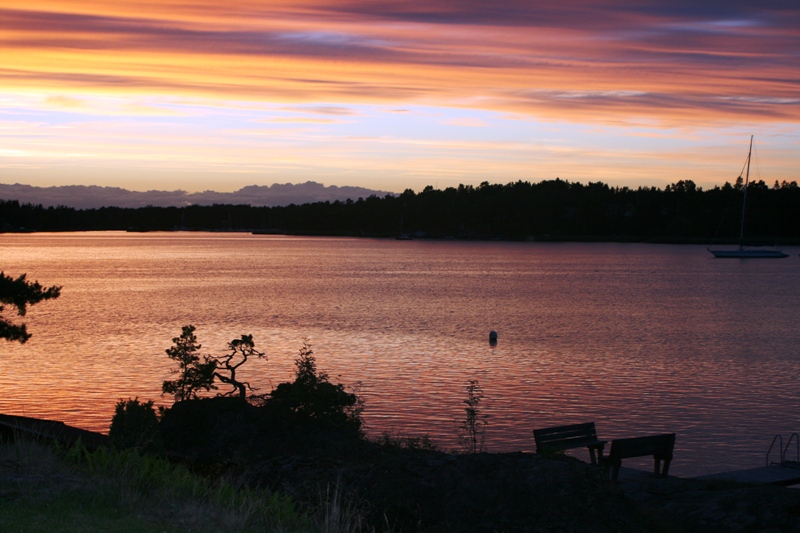 Sommarnatt 2008 med utsikt från stugan på Femöre