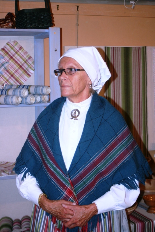 Då tänker hon på Kerstin Lindh som dels är skaparen bakom Oxelösunds hembygdsdräkt, en dräkt som kunde ha tillhört en fiskarhustru för ca 100 år sedan … det förstod Skatan när hon talade med henne …. dels är också Kerstin eldsjälen bakom allt arbete med att skapa utställningarna  där i Grantorpet, ett omsorgsfullt renoverat hus från mitten av 1800-talet, och har till och med  tillverkat ”dockorna” genom att använda sig själv och några närstående som modeller som hon gipsbandagerat  för att få fram ansiktena på den  fiktiva familjen Eriksson, som aldrig levat men ändå funnits och nu huserar där i huset.