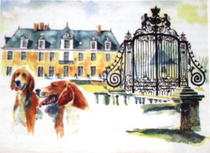 Vi flyger till Frankrike och blir hämtade på flygplatsen och körda till hotellet, också det i ett slott,  där vi skall bo under de här tre dagarna. Där vilar vi ut någon timme, tvättar av oss och byter om för på kvällen bli transporterade till Chateau de Champchevrier och  middag och ”lära-känna-varandra-kväll ” i ”Salle de chasse”, jaktsalen,  på slottet.