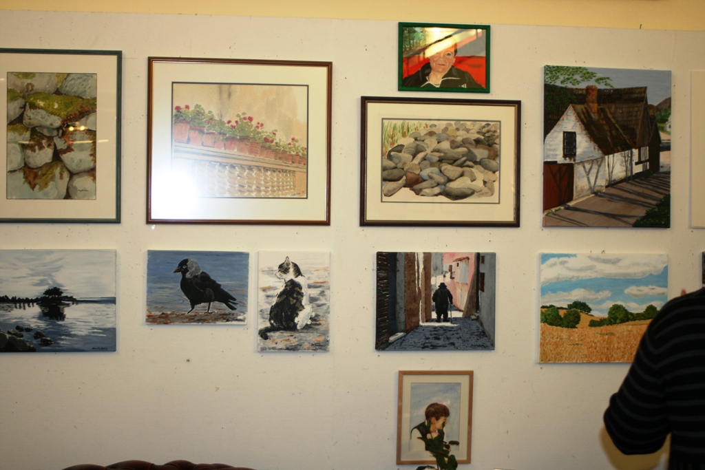 Gårdagens vernissage på Gustaf Wasa ”Till Margiths minne” var omtumlande och skojig och fin och så fint arrangerat av lilla a eller Ann som hon ju heter .och av Göran som hängt tavlorna . .. och det vimlade av ”kändisar” och pressen var där och det var … full rulle …