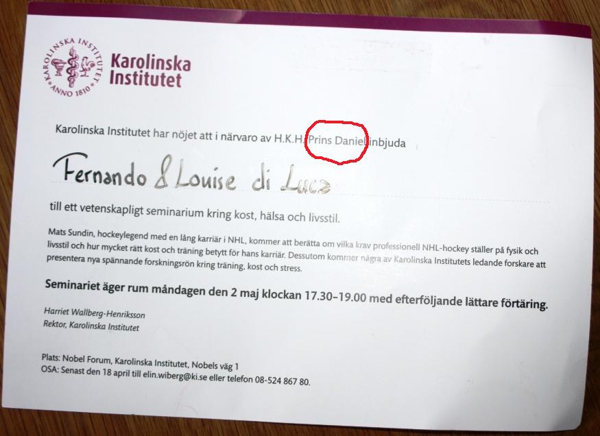 Prins Daniel i mörk kostym … och innanför dörren var alla klädda i kostym, slips, pärlhalsband och klackskor … alla, mer eller mindre. Fernando hade i och för sig ingen slips och Lisen hade pärlhalsband … men det har hon ju alltid … men inga högklackade skor.