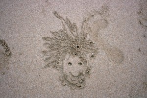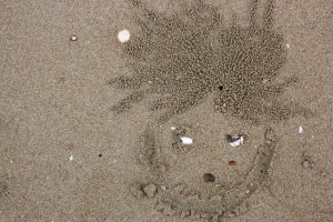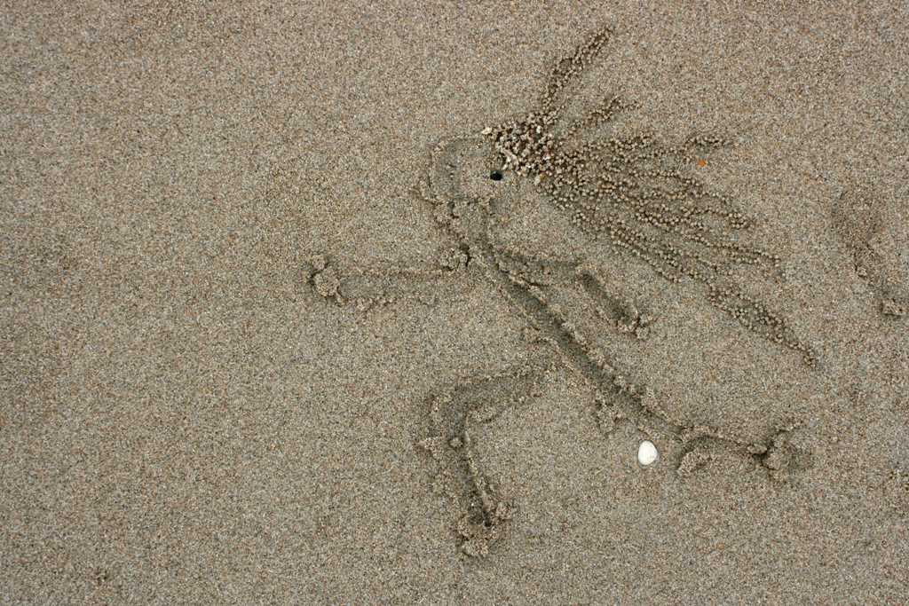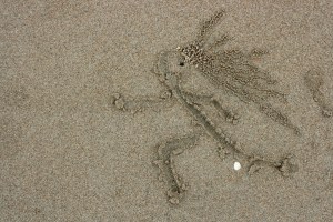 När Skatan gick där började hon roa sig med att rita i sanden … små krabbor gör ju intrikata mönster … helt fantastiska … och Skatan fortsatte liksom … på den inslagna vägen.