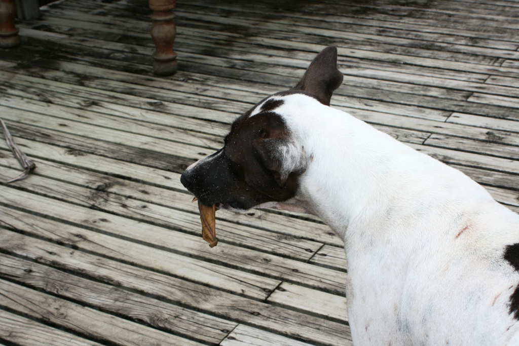 Sedan placerade hon sig helt resolut vid Skatans fötter och låg där under hela lunchen. Skatan ville köpa något gott till henne men när hon erbjöds lite kyckling tackade hon nej … det var inte därför hon låg dår … hon var redan mätt …