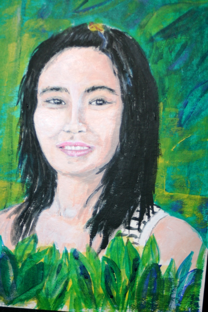 På eftermiddagen målade hon färdigt porträttet på sin fina vän Yupin och gav henne det sedan på kvällen som ett tack för att hon är så vänlig och gullig och hjälpsam …