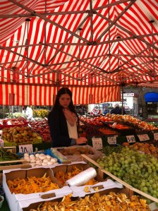 och gick först till torget … för att hitta ingredienser till middagsmaten och sen på café.
