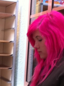 Vackra flickor minsann och häftig hårfärg. När man är ung ska man blomma ut så länge det inte är en massa tatueringar i ansiktet. Det tycker jag är hemskt.