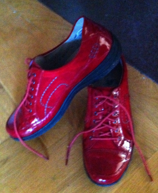 Glad blir man av rött när mörkret sänker sig över staden några månader framöver. Röd handväska och dito tunna skinhandskar…Ahhhh! Sådant hade jag på 60-talet men då gick det att klämma ner fötterna i högklackade slingback med plats för max 2 tår och det får man betala för numer när man är ”Pancho” 😦 Hittade ett par sandaler i somras i rött och dom har jag inomhus och glad blir jag av det. Marinblå sockar och joggingbrallor ”typ” och blå polo och så en röd långkofta. Men de röda sandalerna med lagom kilklack är prickien över I…:-) Såg i tidningen att det äntligen finns röda mockaskor som förr, med tjock sula för kalla dagar och det var i någon butik där man även gör avtryck av fötterna för de perfekta inläggen. ”Bekväma Skor” tror jag butiken heter här i Götet.