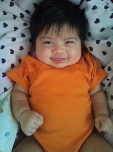Jovisst är hon en riktig glad knubbig liten unge … Väger redan 7 kg fast hon bara är 3 månader 🙂