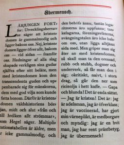 – Jag är kristen! Det är: jag är adelsman, jag är öfverklass; jag är vaccinerad, har gjort min värnplikt, är medboragare och myndig: jag är en hvit man, jar har rent prästbetyg, jag är übermensch!