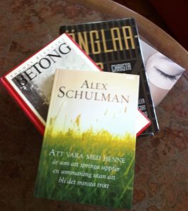 Visst är det härligt att ha några böcker liggande på lut, men så många lutande som du har jag inte. Nu ska jag ta i håll med Mari Jungstedts ”Den sista akten” i väntan på att nästa bok av Karin Alvtegen ska anlända.