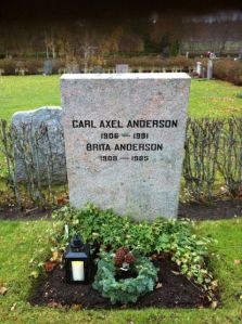 Mannen och Skatan tände sitt ljus och la sin krans vid gravstenen som en gång varit trappsteg hemma hos Mannen och stod  en stund och tänkte på Carl Axel och Brita …