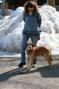 Äldsta dottern Michaela med Robert … senaste mannen i hennes liv … med hunden Schnapsi … stannade till exempel en hel vecka …