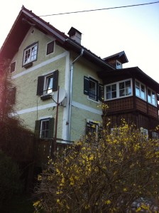 Brigitte hämtade dem och de for genom det bekanta landskapet hem till henne. Inte längre till Bad Goisern som hon lämnat för en lägenhet högst upp … mitt i Bad Ischl … (När de for till Bad Goisern för att se hennes exhem och vandra längs Hallstätter See blev de bestörta vad de nya ägarna höll på att göra … klä hela huset med plankor … med trä. Den fina milda gröna färgen på putsen var borta. Då kanske det kändes lättare att skiljas från det (kan Skatan tänka sig) än om det var samma ”gamla” härliga hus som inte längre var hennes.