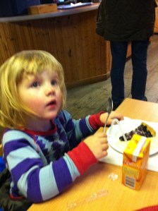 De tog det lugnt på lördagsmorgonen och åkte sen och bowlade …. något som var nytt för Skatan. Och oh vad roligt det var! Johanna vann förstås stort men Skatan var inte såååå dålig ändå. Hon träffade ju en och annan kägla. ;-).