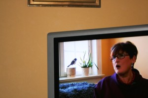 Kristina Thulin och hon snackade fram och tillbaka, mailade tur och retur … och så skulle det bli av. Man skulle komma från Stockholm och filma Skatan i sin egen ”blogg”-miljö även om den miljön … som ni alla vet … inte är så stationär. Skatan kan lika gärna kraxa från Bad Ischl i Österrike som från Skåne, Örebro, Borlänge och Nyköping. Skatan kraxar där hon slagit ihop vingarna … slagit sig ner och landat … så att säga.