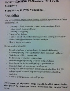 Det har räfsats löv och häcken har klippts och träd och grenar har släpats fram och forslats bort. Perenner har också klippts ner i de gemensamma rabatterna. Syrénbusken har toppats och och och … och Villa Skogsbergs trädgård står redo för vinter och vår.