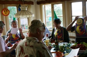 Vi började tidigt … redan klockan sex … med att kolla lite i sånghäftet och ta på oss hattarna, som har hängt med nästan alla år som just Skatans ”ungdomsgäng” har träffats hos oss … sisådär trettio år har det blivit.