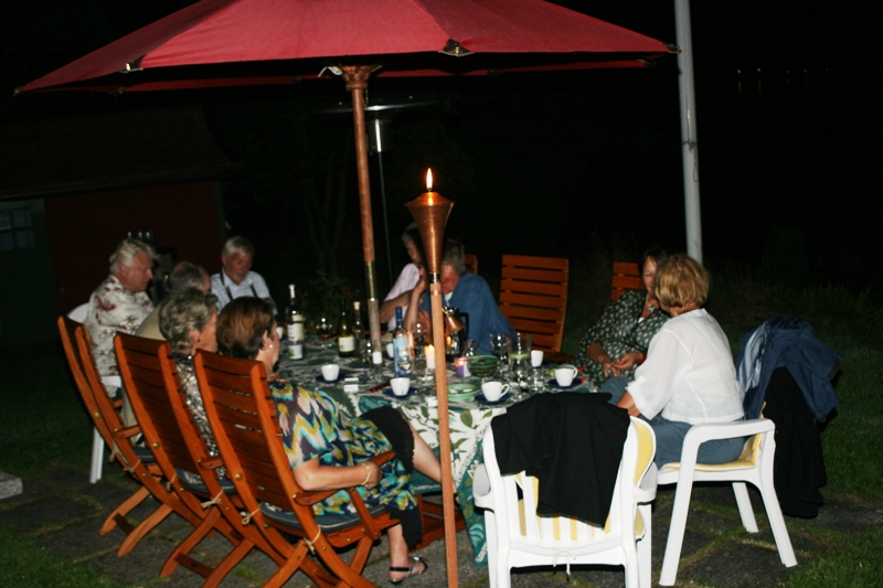 När faten var avätna och det var dags för kaffe och fortsättning … förflyttade vi oss ut i mörkret … och Skatan provade sin nya ”extrablixt” …