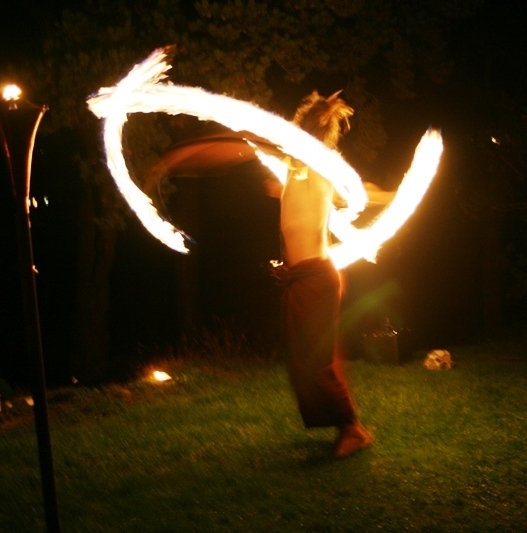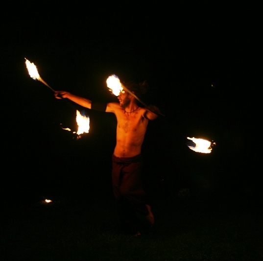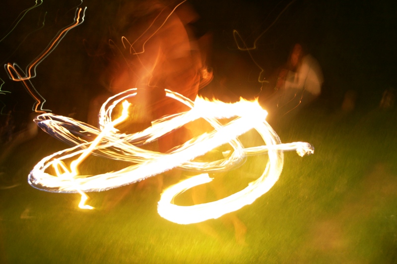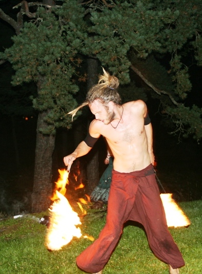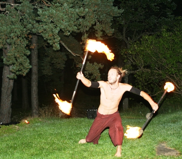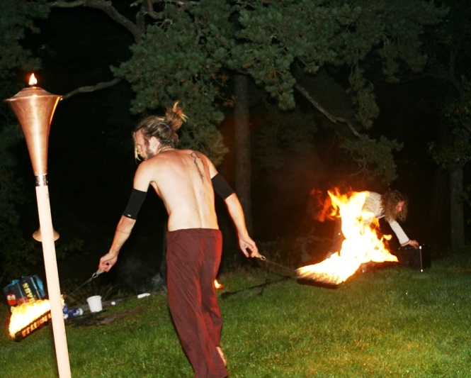faktiskt stämmer de bilderna nästan bättre in på den stämning som vi mötte där på gräsplätten framför stugan … eldartisteriet mot den kolsvarta himlen …