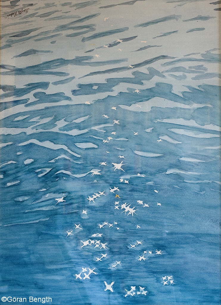 Hon sitter dar och tittar ut pa vattnet och kanner en otrolig sorg over ‘svunnen” tid, over allt som ar forbi och over, som aldrig kommer tillbaka och som aldrig gar att repetera. Hon ar en grubblare och altare av naturen och har Skatan ingen att grubbla tillsammans med grubblar hon pa alldeles egen hand forstas och blir latt sentimental och … blue