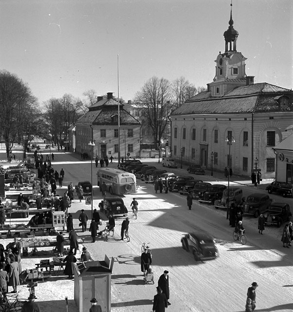 Men för att fortsätta där hon började så fick hon en härlig promenad i duggregn ner till Stora E:s garage. Skatans morgonrundor med Stina har ju blivit något mindre … Stina orkar inte och sätter sig helt sonika ner och vägrar fortsätta gå. Och då är det bara till att vända eller korta ner promenaden. Nu, i morse, passerade hon förbi klockstapeln som dalfolk håller på att bygga upp igen efter branden som slök den helt och hållet för några år sen, och forsen vid Kvarnen och Bryggeriet och Nyköpings hus. Nu när Stina är tröttare måste Skatan kanske ta sig längre promenader (och snabbare) utan sällskap. Mannen orkar inte heller gå så långt längre.