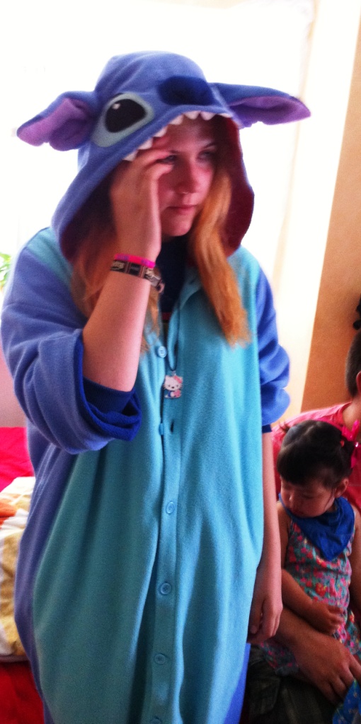 Och Johanna ”Kalle” passade på att demonstrera dräkten hon fått av Skatan till födelsedagen …