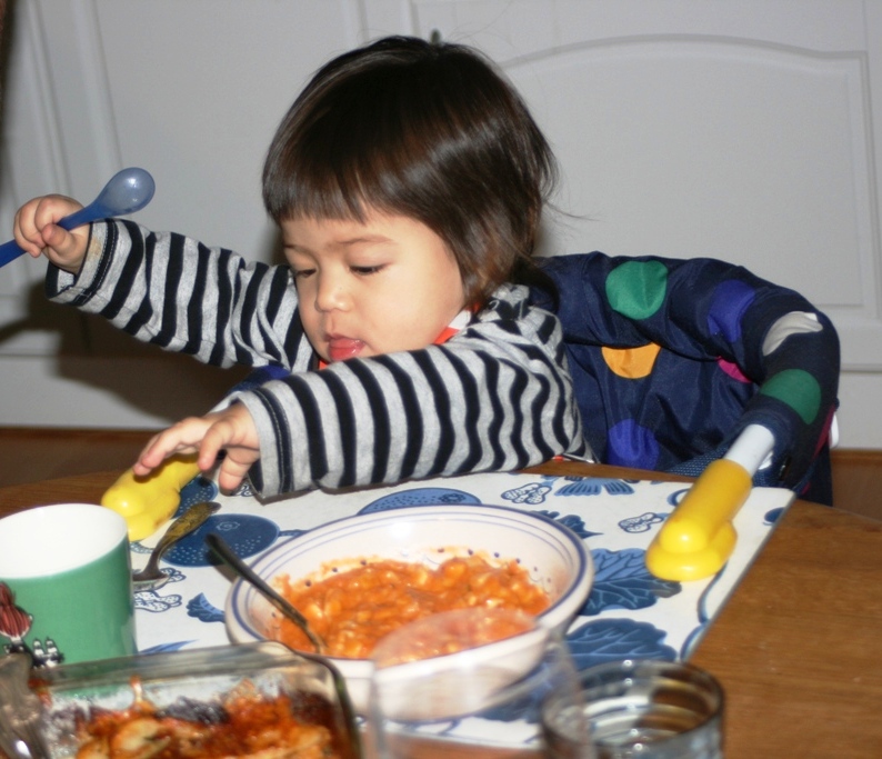 och när alla de andra är på G i snöovädret till Arlanda, har förstås resterna av frukosten lämnats kvar till farmor Skatan och StinaFina att ta rätt på.