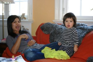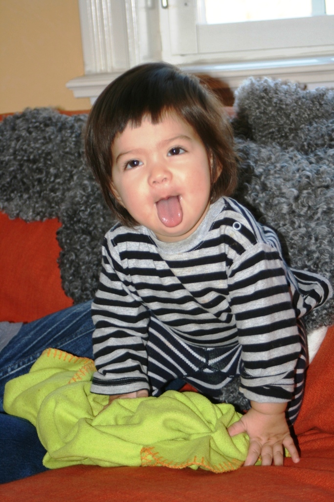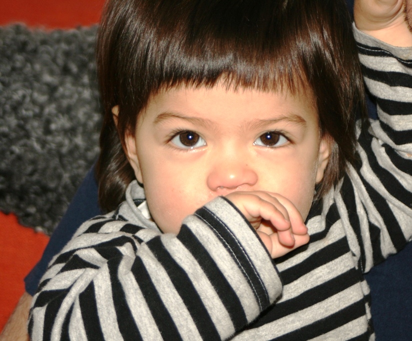 Först ut en bild av en liten avvaktande fröken … men snart nog kom hon igång där i soffan …