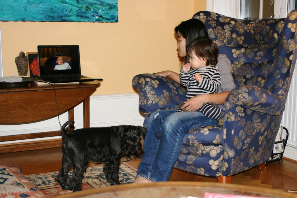Sitta lite i mammas knä och titta på bilderna i farmor Skatans dator …