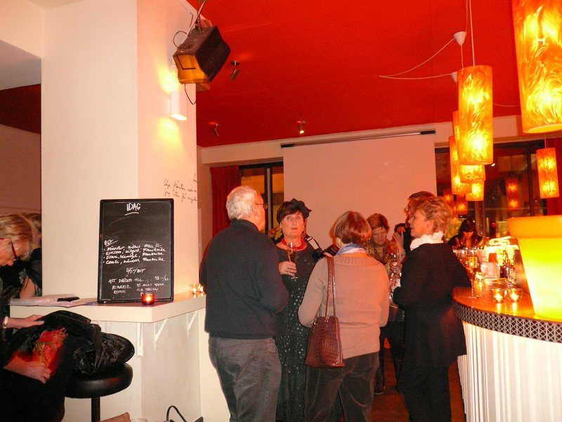 Själva blev de bjudna på champagne och små gåsleverkrustader och så småningom laxtournedos och sallad och vin och till efterrätt gino och glass … och efterrättsvin.