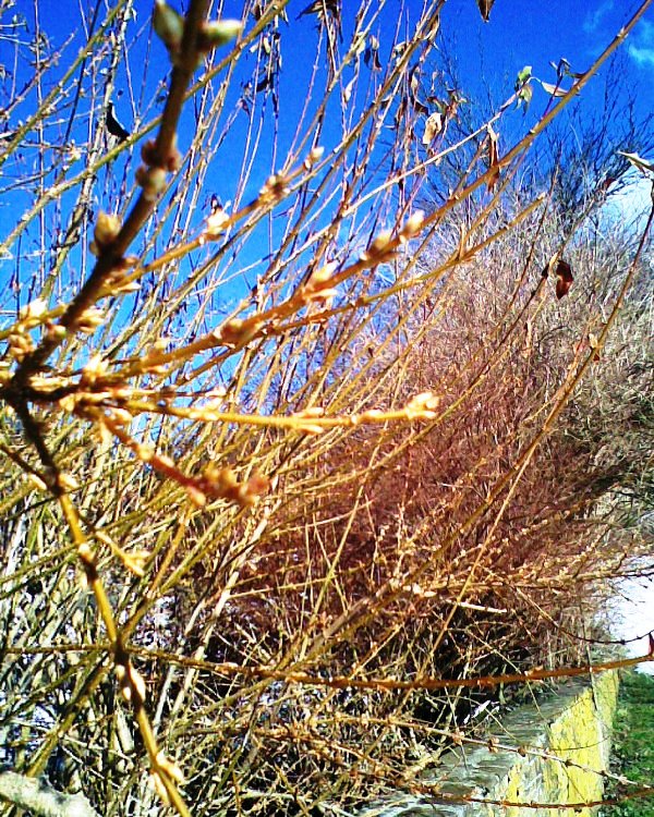Och efter maten skyndade vi oss ut i vårsolen … ja, just det … VÅRSOLEN fullständigt vräkte ner sina varma strålar och Skatan var på tok för varmt klädd … men njöt förstås i fulla drag … av solen, värmen och takdroppet, fågelsången och blommorna.
