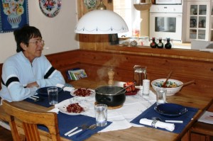 Lagom till lunch blev Skatan hämtad och kom till dukat bord hos Brigitte i Bad Goisern … Det var lite uppbrottsstämning för väninnan Heide skulle iväg efter Mittagessen … som som vanligt smakade hur gott som helst när Brigitte lagat den … grönsakssoppa, currygryta med sallad och espresso på det …