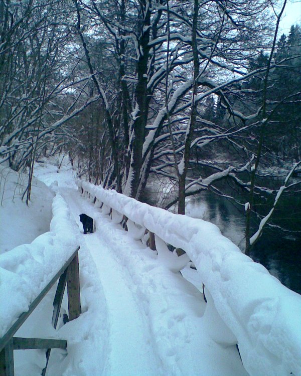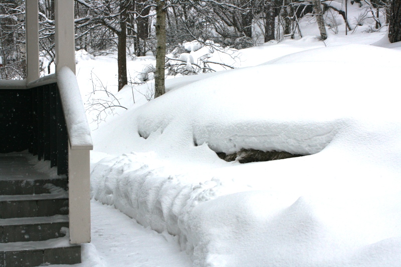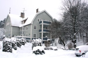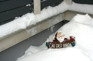 Idag skall Skatan, Mannen och StinaFina ta bilen till Stockholm. Snön som föll igår och natt ligger kvar som en isskorpa på vägar och trottoarer … ser det ut som … härifrån Skatans utblick från köksfönstret.