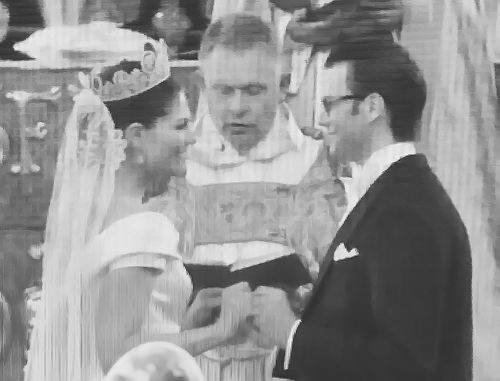 Kungen ledsagar Victoria fram till altaret och lämnar henne där att bredvid Daniel … äntligen … bli fri, jämbördig med sin blivande man.
