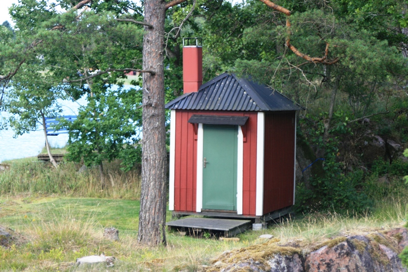 Dasset är så placerat att man kan sitta där i godan ro med vidöppen dörr utan att det är någon insyn …